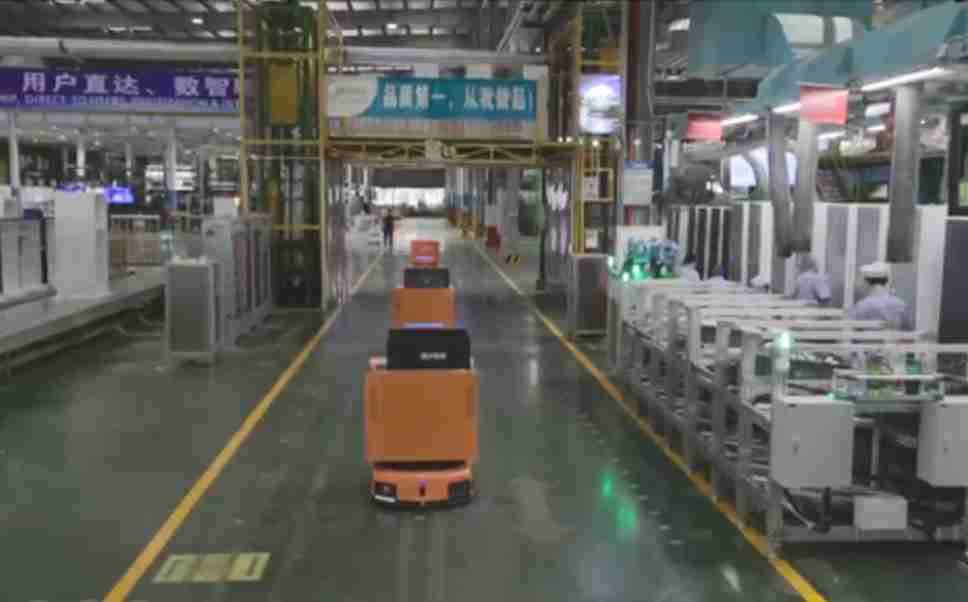 为车载冰箱物流配送打造的智能解决方案,,,包含产中物流通过潜伏举升AMR搬运至线边,,产后成品物流智能仓储,,流程包含产中物流智能齐套入库,,,,线边安灯叫料AMR智能配送至线边,,,,成品入库、、出库,,,通过无人堆高车机器人,,智能仓储管理替代人工作业管理,,,实现更高存储、、更高效率、、、更具柔性化的解决方案。。