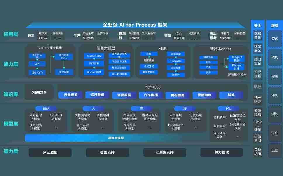 端到端的一站式AI工作空间深度融合了从企业战略规划到日常经营的全流程业务板块,,,定向解决车企内部领域多、、、、部门多、、、、链条长、、、场景碎片化等难题,,支持车企快速构建以AI为核心的生产力写作体系,,,实现任务执行与AI能力的无缝集成与交互